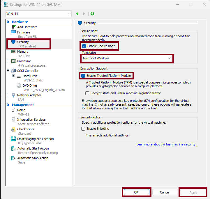 TPM errors in Windows 11 Hyper-V installations are not actual hardware problems — It usually happen because the virtual security settings are missing. Once you enable Generation 2, Secure Boot, and Virtual TPM, the installation works smoothly.